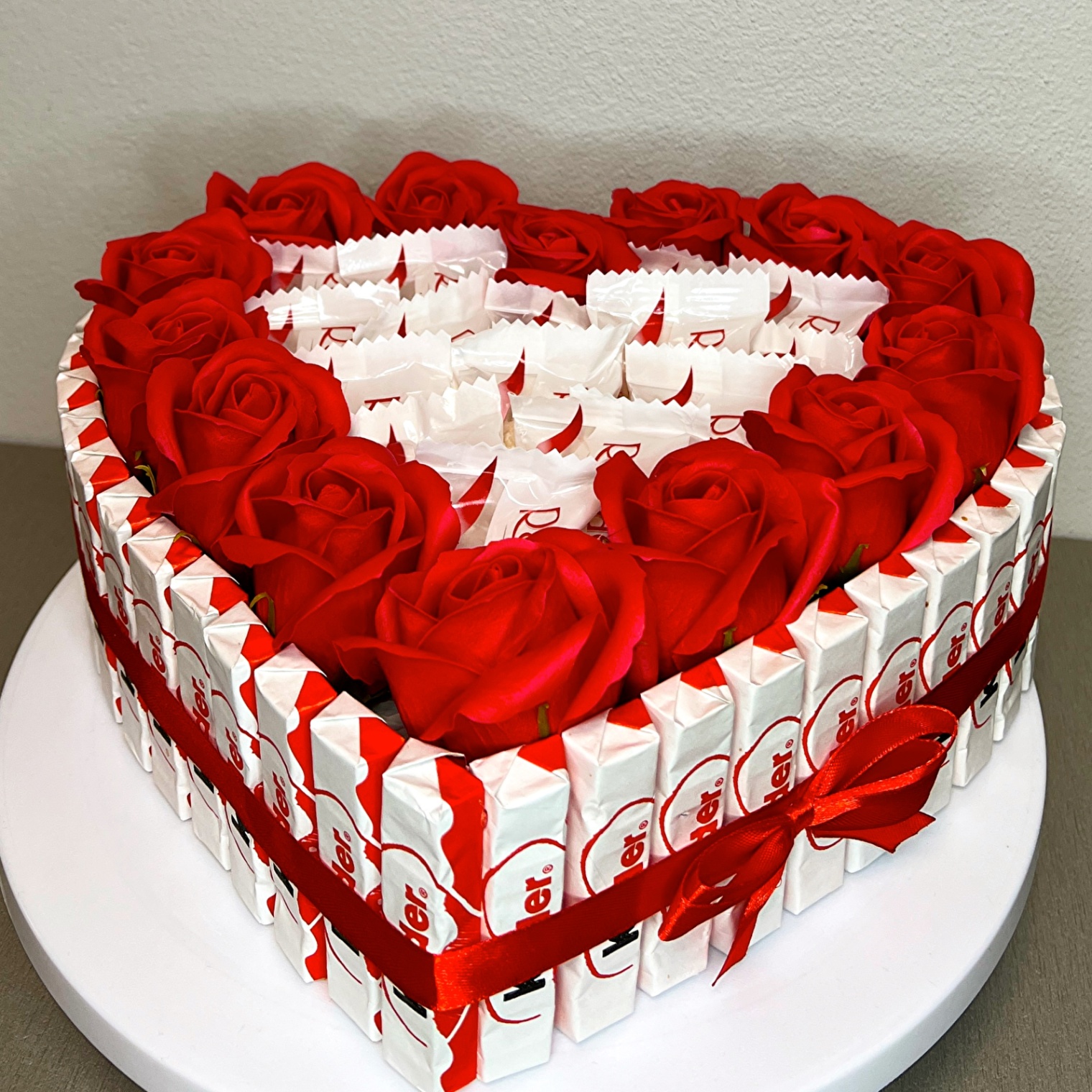 Kontur tortu wykończony jest eleganckimi czerwonymi mydlanymi różami, nadającymi wyrazisty i zmysłowy charakter.
