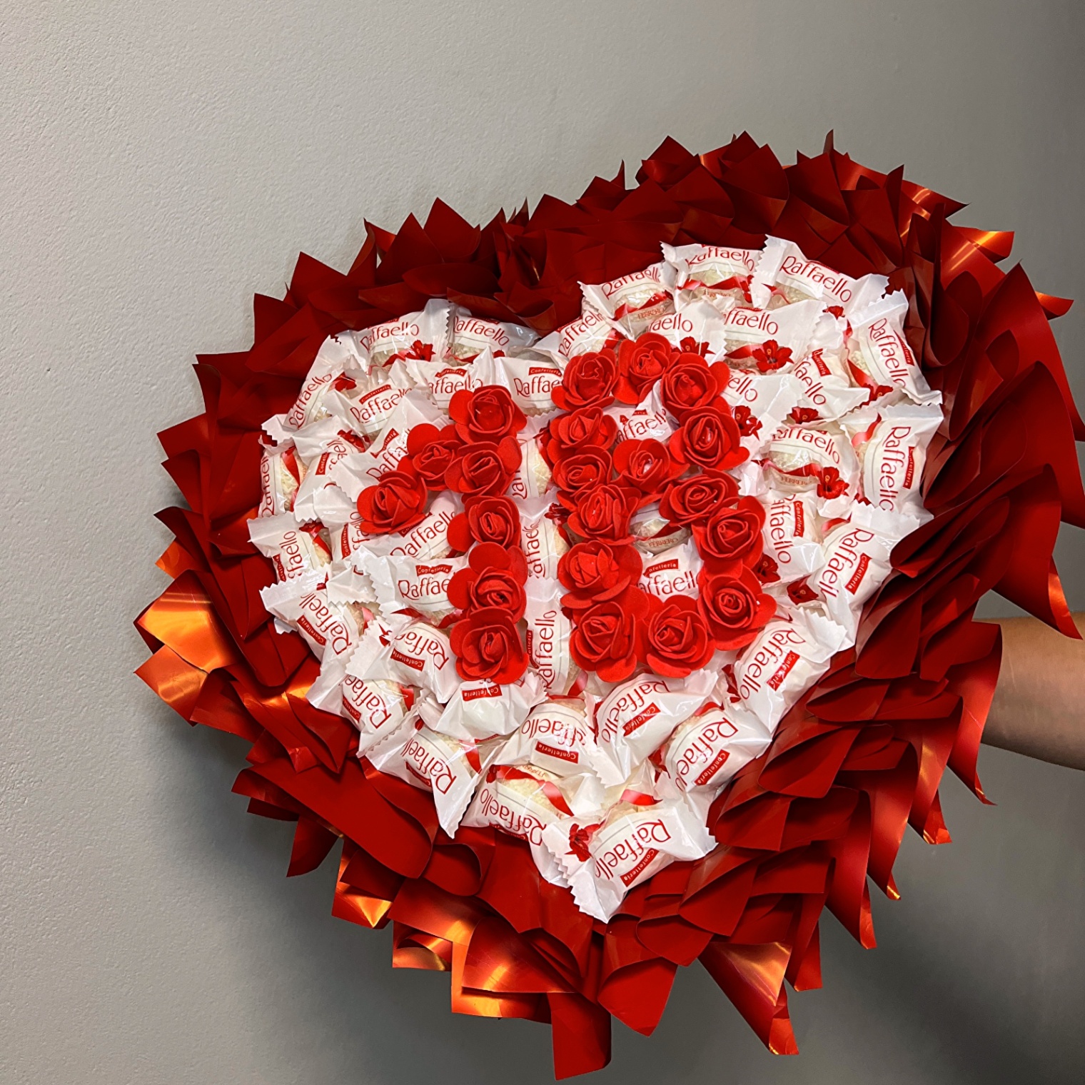 Duże, efektowne serce na 18. urodziny – słodka kompozycja pełna blasku i kokosowego szczęścia.