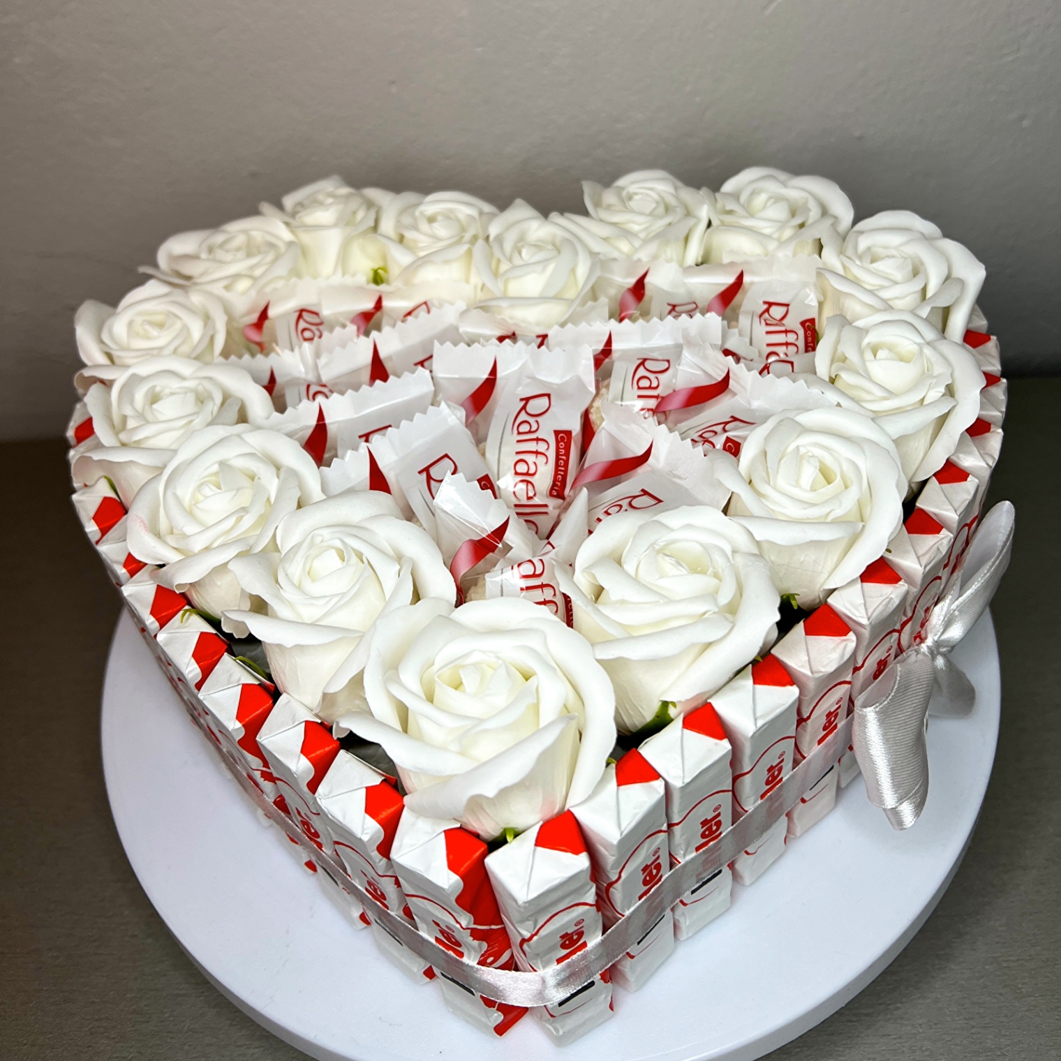 Wnętrze wypełniają delikatne pralinki Raffaello, które wprowadzają lekkość i subtelną słodycz.