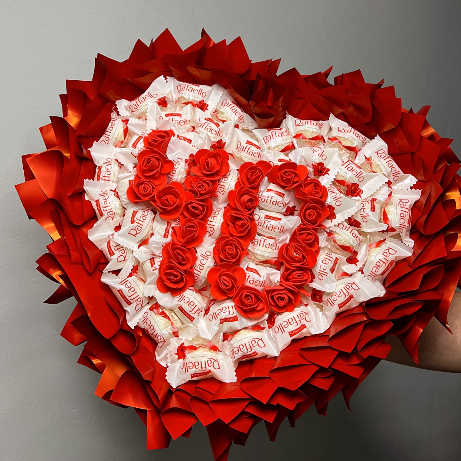 To bukiet, który łączy smakową rozpustę Raffaello z pięknem ręcznie robionej cyfry 40 – idealny na 40-ste urodziny, jako największy „wow” prezent dla solenizantki.